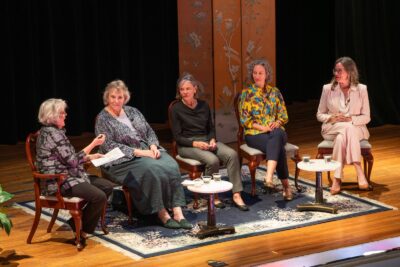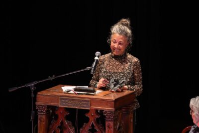 - Moderator Rachel Platt described Louisville’s Olmsted Park Conservancy’s importance. “There are 17 Olmsted-designed parks and six tree lined parkways connected by a 26-mile network. The Olmsted parks Conservancy is a nonprofit dedicated to restoring and protecting these sites and is rooted in the belief that parks are good for communities and essential to our well-being. Frederick Law Olmsted’s belief in parks as democratic spaces for all people is deeply personal to many in this room tonight…I feel like I need my sportscaster voice because this is an All-Star lineup.” Platt introduced Susan Rademacher, Mimi Zinniel, Layla George and Mary Grissom.