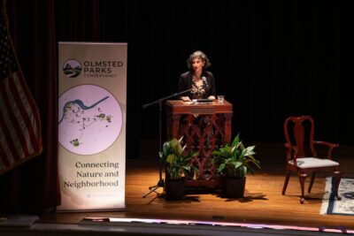 - Dr. Aretha Fuqua, Olmsted Parks Conservancy Trustee, presented Sarah Wolff with the Frederick Law Olmsted Award for her 21 years of work supporting Olmsted Parks Conservancy’s mission.
